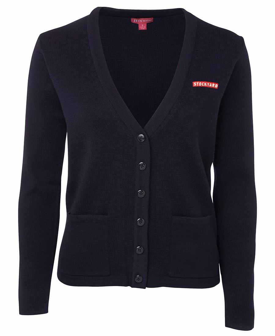 Various Knits – The men got a v-neck jumper and a navy zip–up high neck knit, both featuring a bottom basque for a more flattering fit. The women also have a v neck jumper and of course an office–essential classic cardigan with matching navy front buttons and two convenient large front pockets.