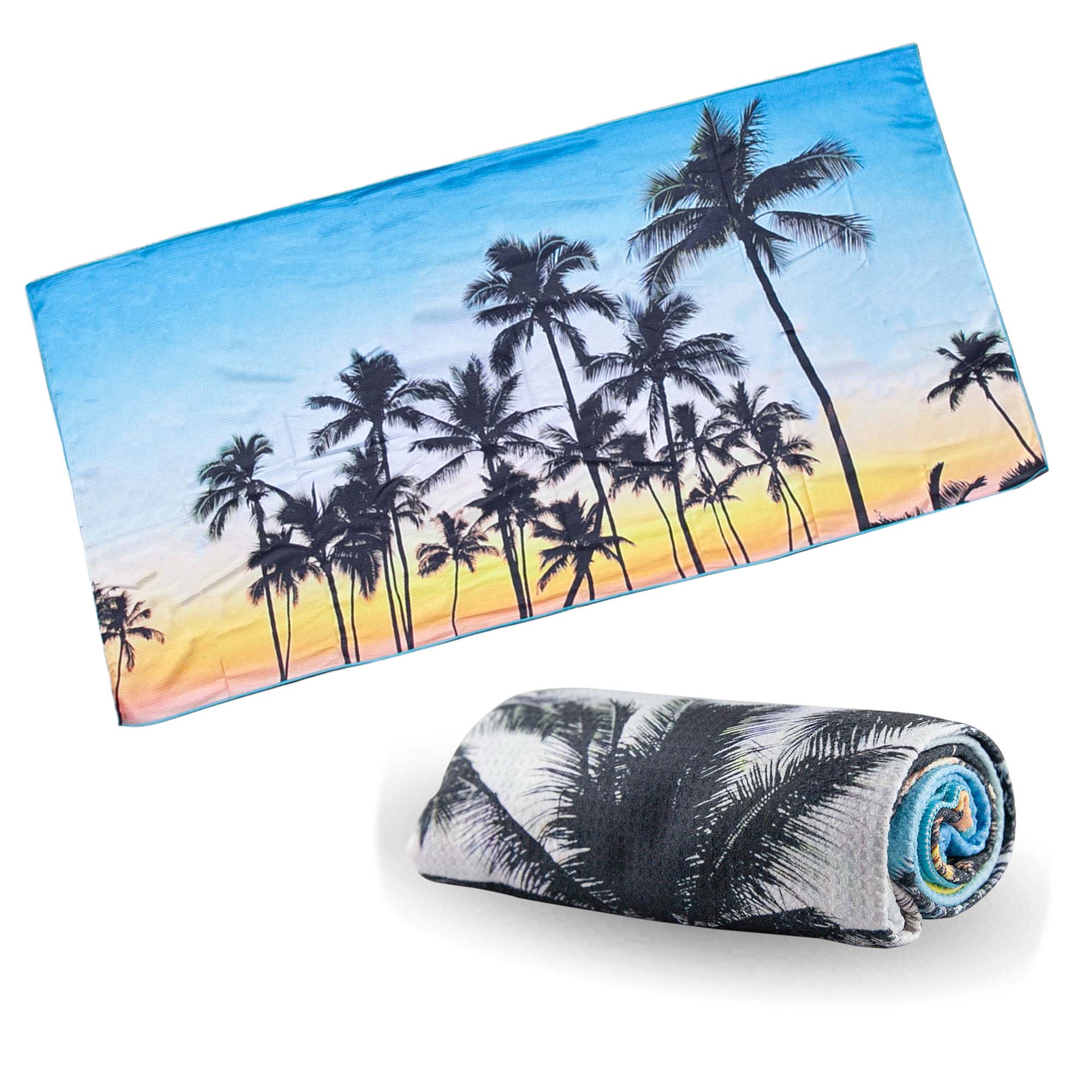 This waffle fabric, sand-free digital printed beach towel is made from 80% recycled polyester and 20% polyamide, combining eco-friendly materials with practicality. With a 400gsm fabric and weighing 512 g per towel, it is soft, absorbent, and perfect for vibrant full-colour prints, making it an ideal companion for the beach or pool.