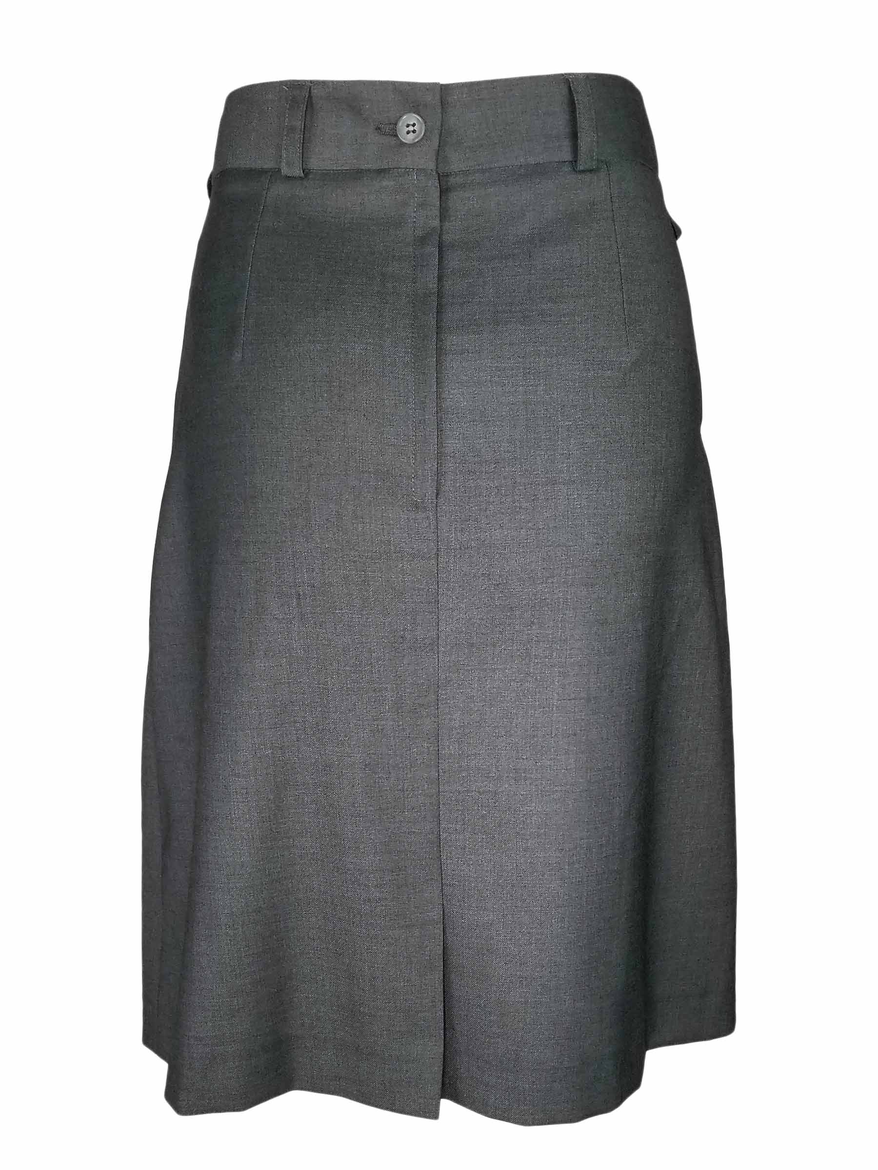 This A-Line skirt is widely known as the most flattering skirt shape. Fitted at the waist with and A-line finish and skimming the top of the knee this skirt is perfect for any body type. Match it with a blouse for a chic comfortable look or double down on the professional look and team it with a business shirt. Made from a wool-poly blend this skirt fabric is breathable and built for strength and durability. It has the added benefit of being machine washable and contains a 2% stretch.