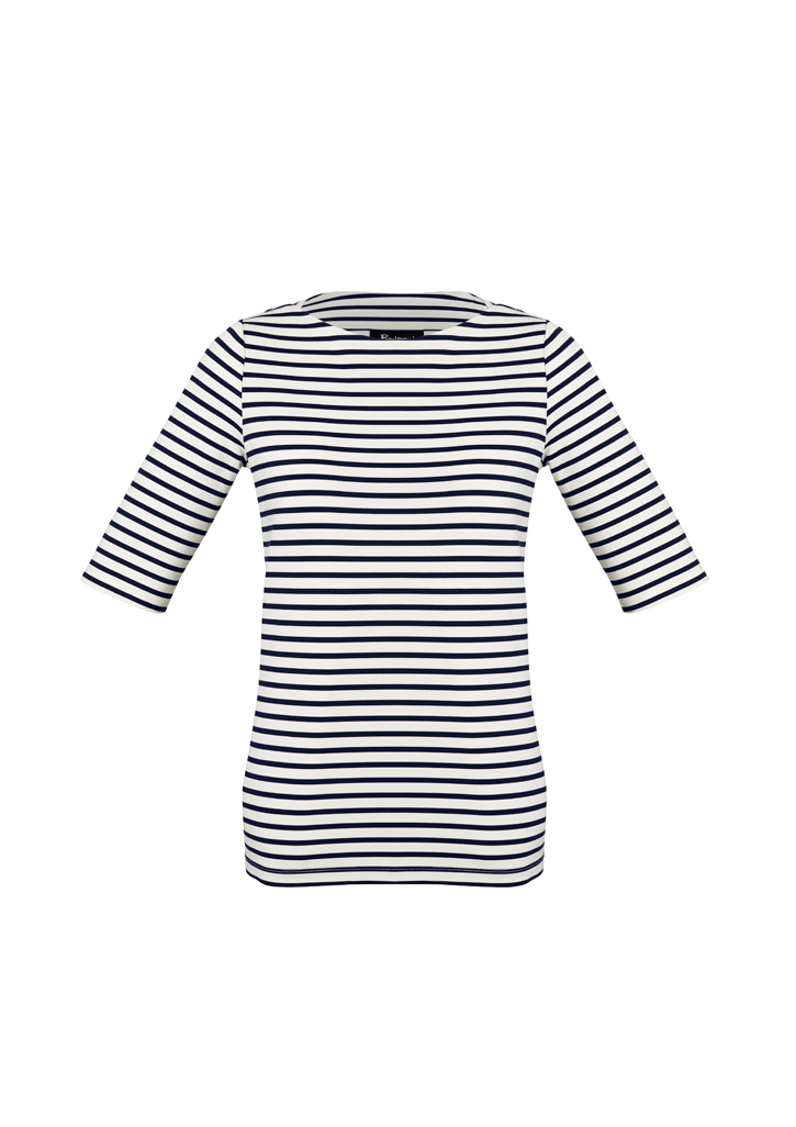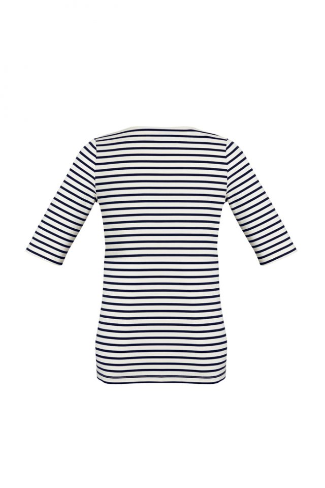 Camille Top – Dark Navy & Ivory Stripe Half Sleeve