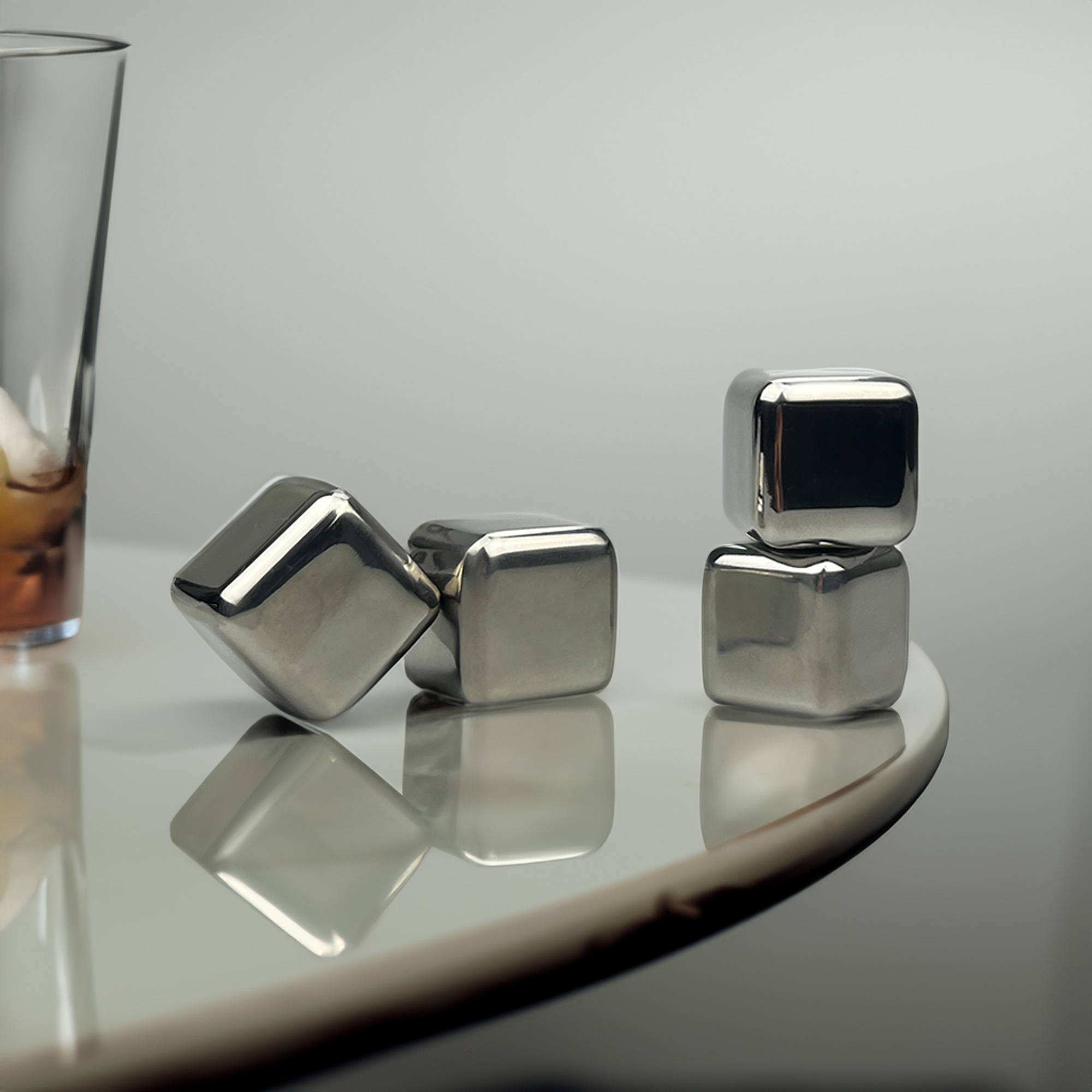 Keep your drinks cool without diluting with the Mate Stainless Steel Ice Cubes. The cubes are made from high grade non-toxic stainless steel and filled with an inner coolant that will freeze and keep your drinks chilled for longer smooth edge won’t scratch your glass and they are reusable set of 4 cubes packed in a plastic gift box.