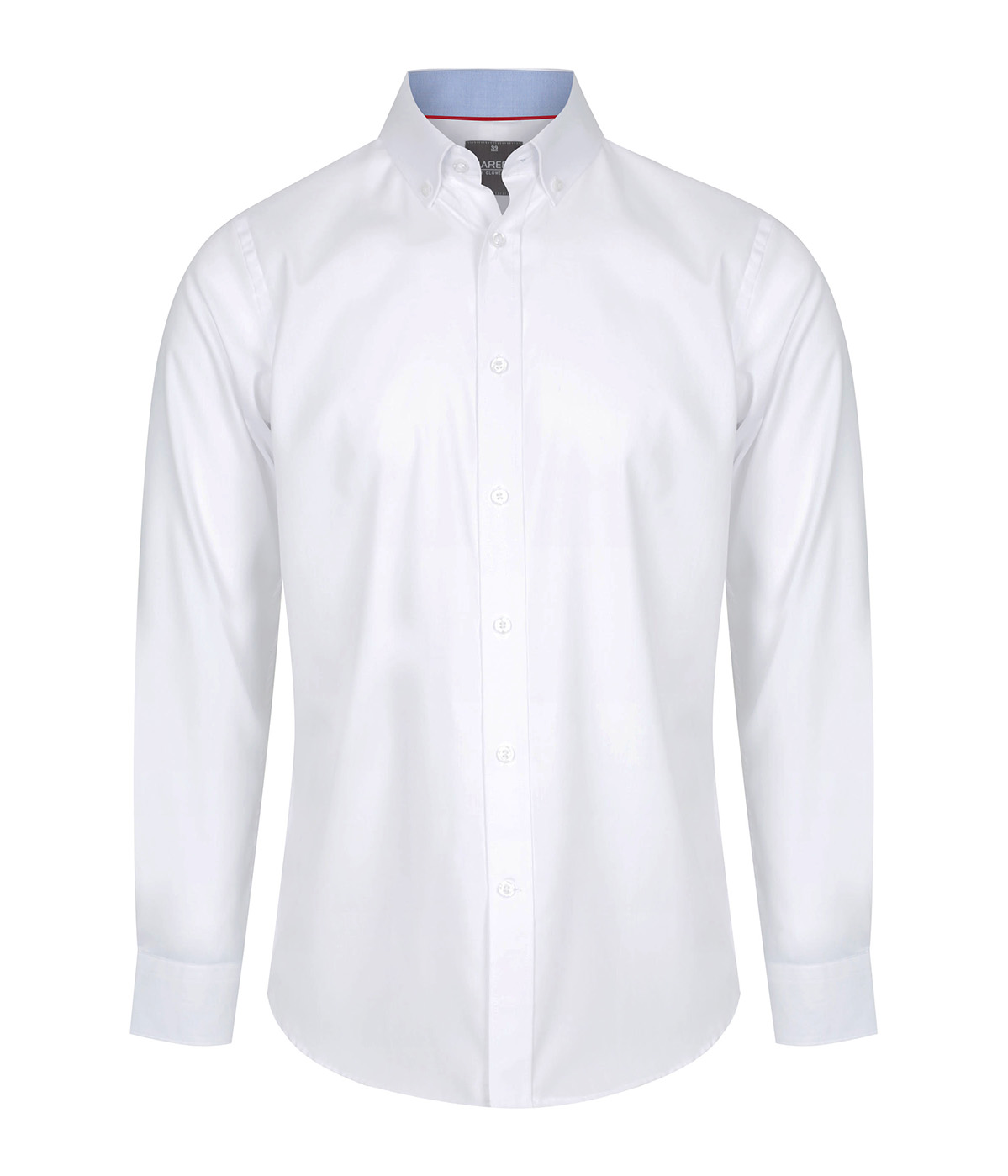 Crafted in a slim fit for a modern silhouette, this shirt features a placket front, button-down collar, and convertible cuffs. Internal collar and cuff contrast trims add a refined touch, making it a versatile choice for business or smart casual wear.