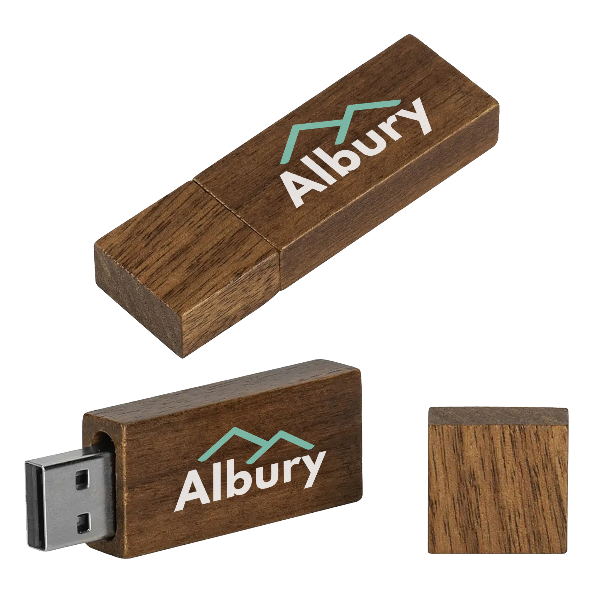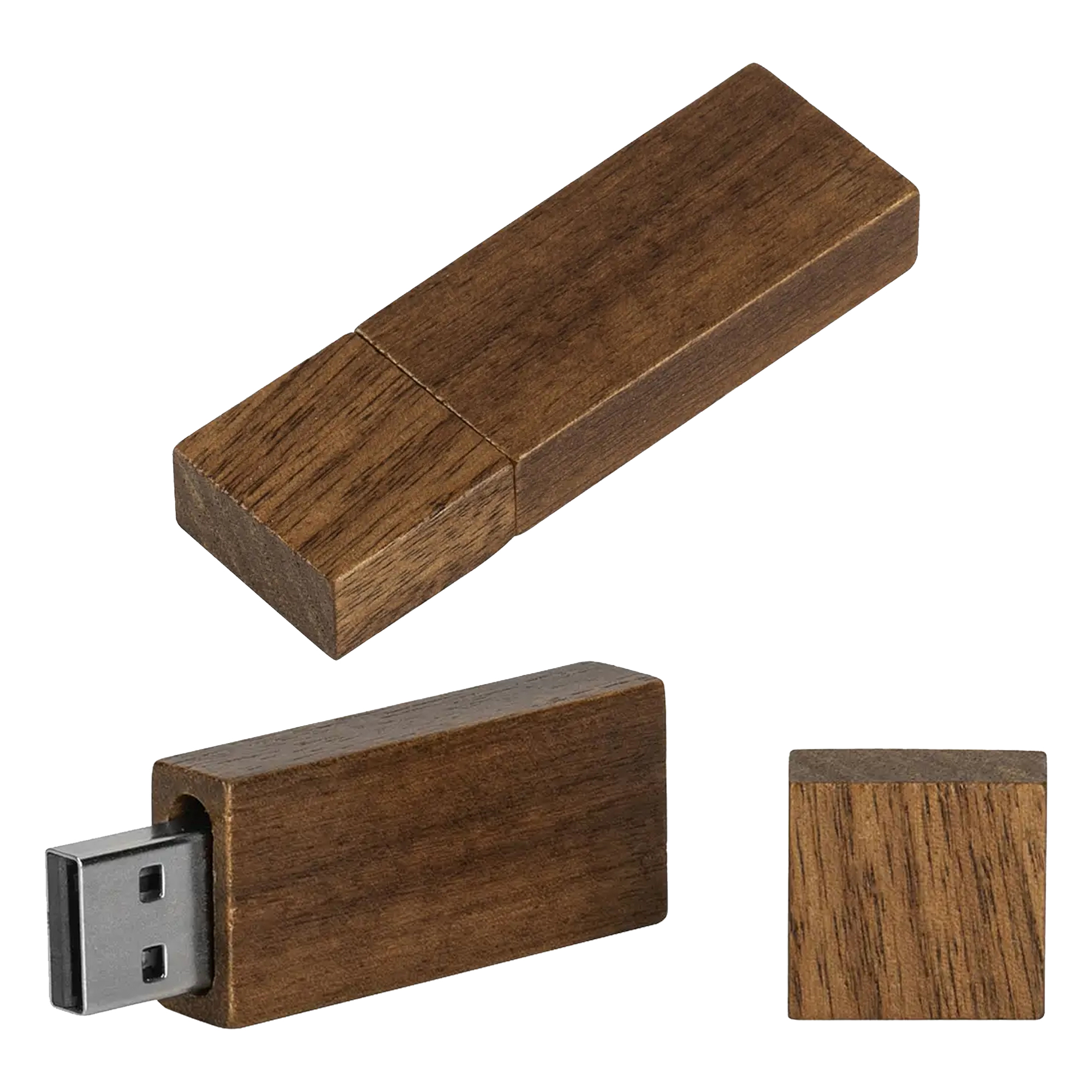 Simple designed Proxela Wood USB with high quality China made 32GB flash drive using the latest Micro COB chip-technology and USB 2.0 interface with a 1 year warranty. Features a read speed of 18MB/s a write speed of 10MB/s and a magnetic cap closure. Data uploading available on request.