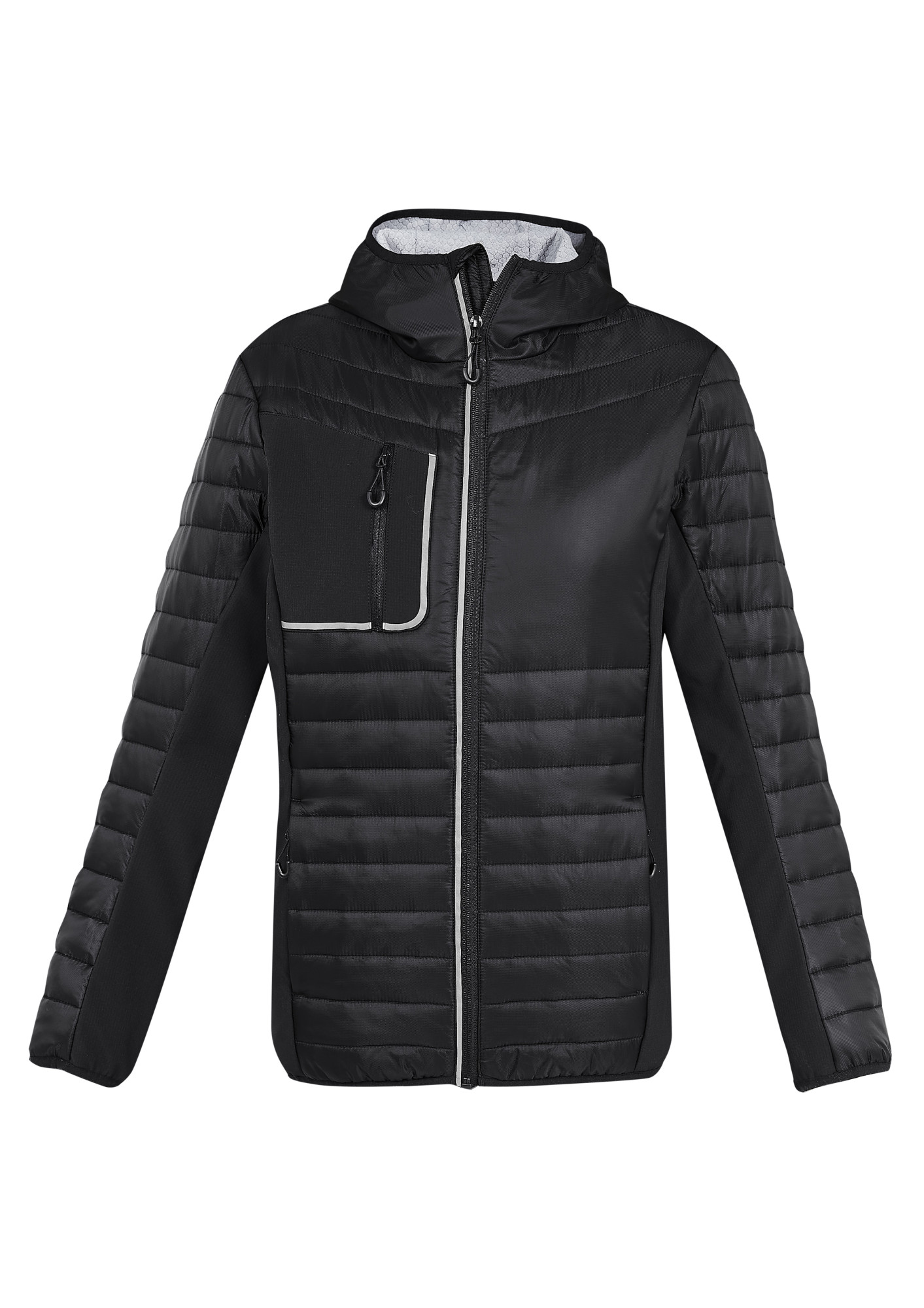 - Full zip with reflective trim and rubberized toggles