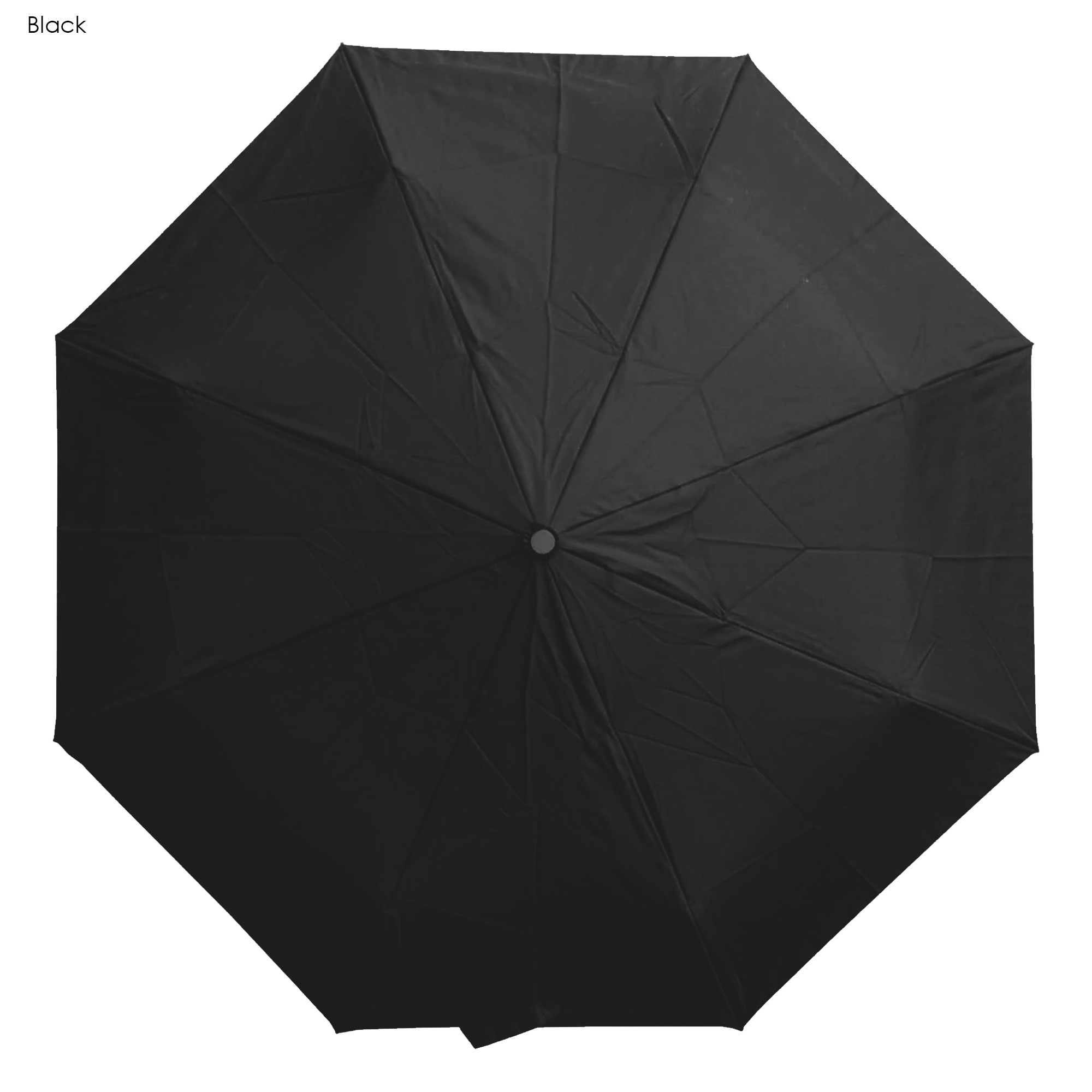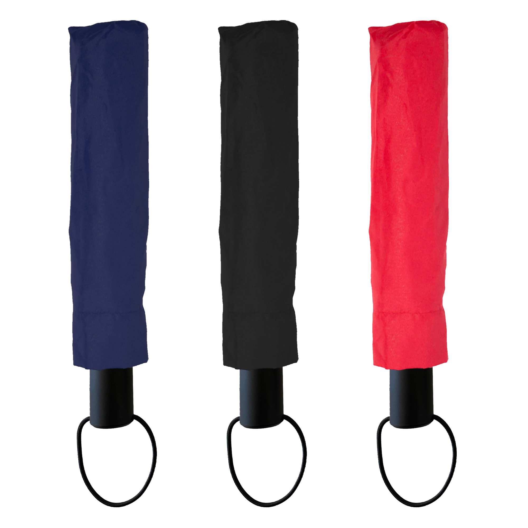 Fully automatic eight panel bi-fold umbrella with a stop-hold safety feature. Strong 190T showerproof pongee canopy with a velcro tie it has a matching carry sleeve and 52cm ribs. The frame and shaft are constructed from steel/fiberglass metal a two-stage telescopic metal shaft comfortable rubberized plastic handle has a elastic wrist strap attached.