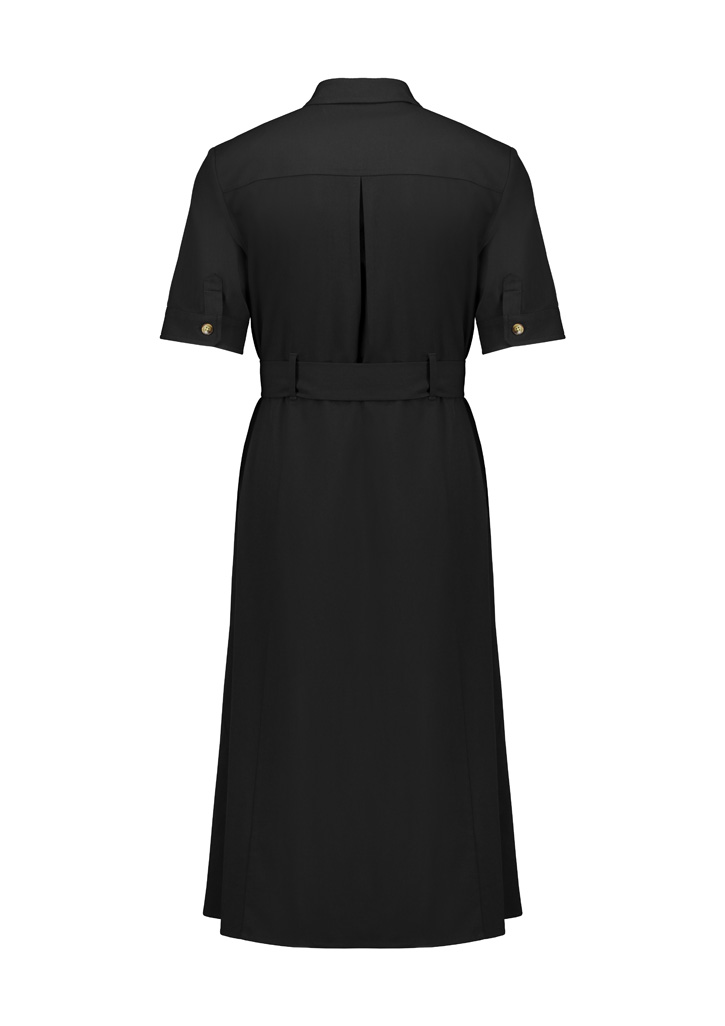 A versatile midi dress designed with a relaxed fit and flattering A-line silhouette. Featuring functional details like side seam pockets and modesty bust buttons, it offers both style and practicality. Perfect for effortless everyday wear, complete with a matching detachable belt for a polished finish.