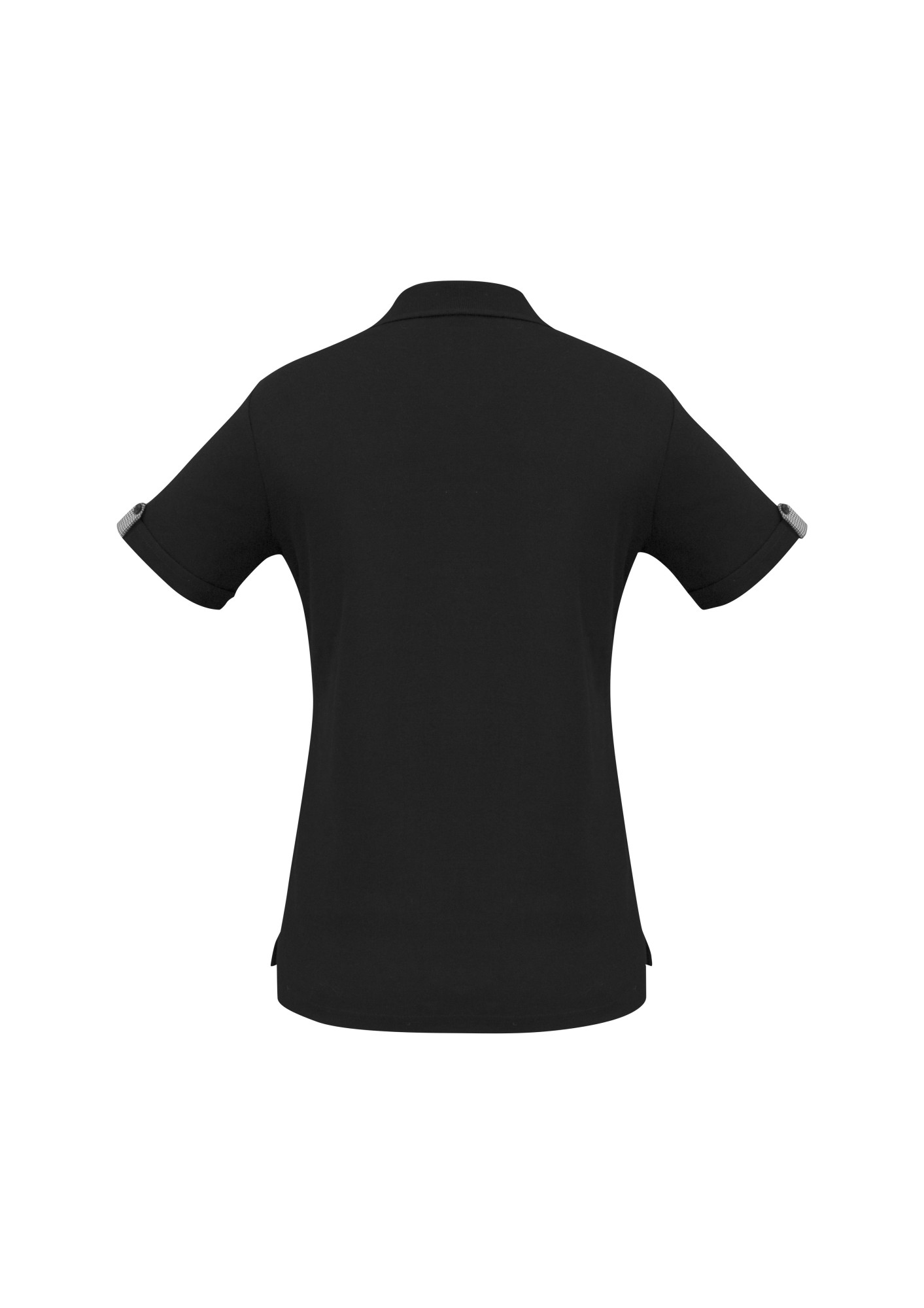 - Contrast woven check placket, sleeve tab and collar trim