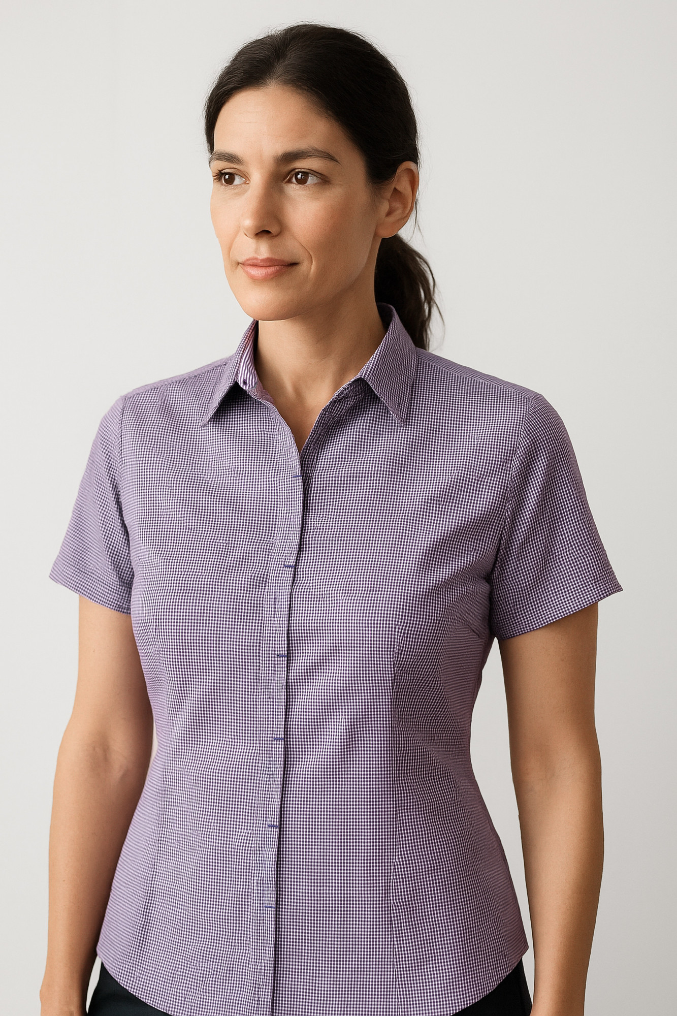 Crafted from a cotton-rich gingham check fabric with added stretch, this shirt combines softness, durability, and comfort. Easy to care for and breathable, it’s a versatile piece that pairs perfectly with classic white shirts and blouses for a polished wardrobe range.