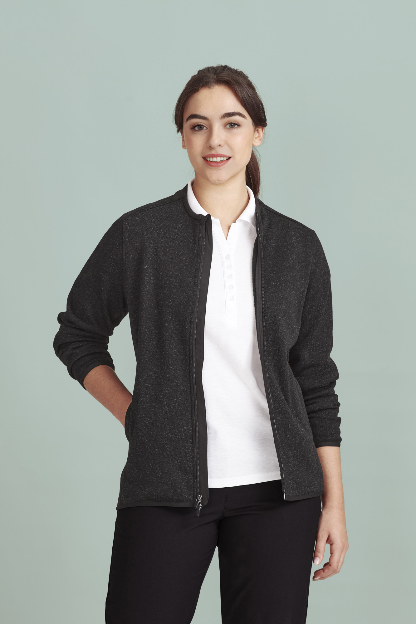 An elevated alternative to the classic polar fleece, this transeasonal jumper combines comfort and function with ribbed neck detail, front zip chin guard, and multiple pockets. The women’s style features a 2-way front zip for added versatility, making it ideal across a wide range of industries.