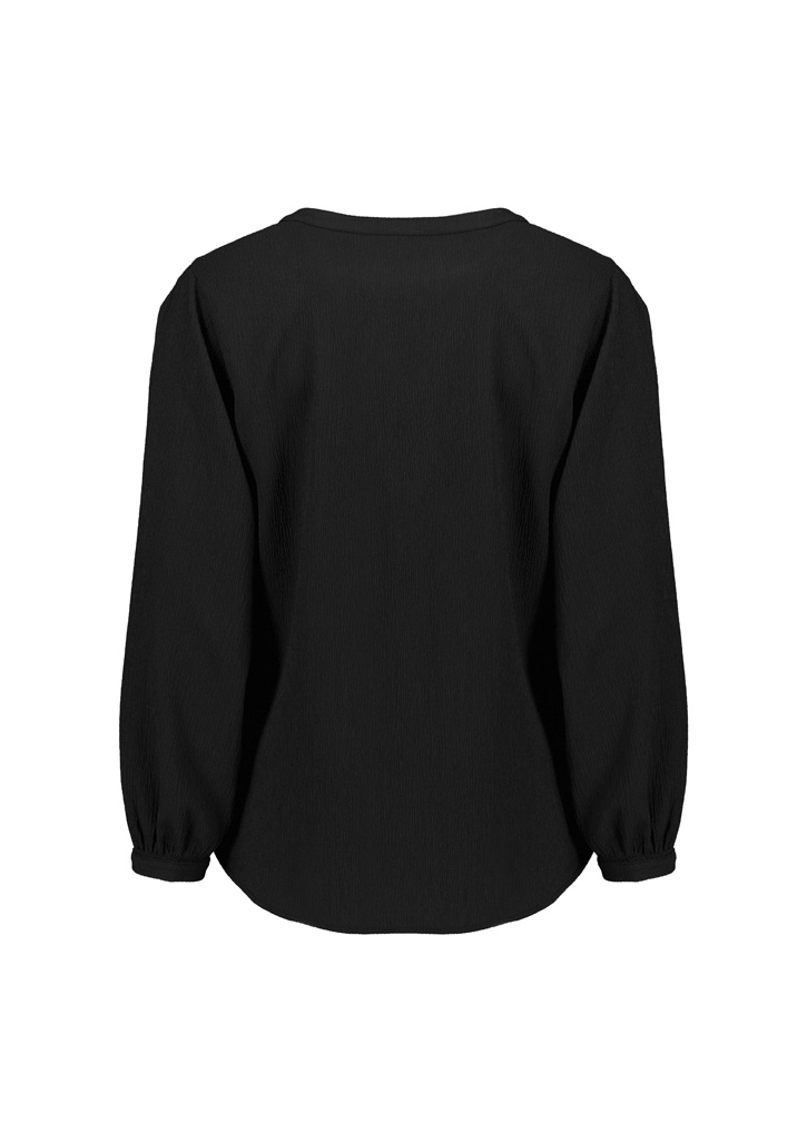 An elegant blouse designed to elevate your everyday look. The voluminous sleeves and textured fabric add a touch of sophistication, making it perfect to pair with trousers or skirts for a polished professional outfit.