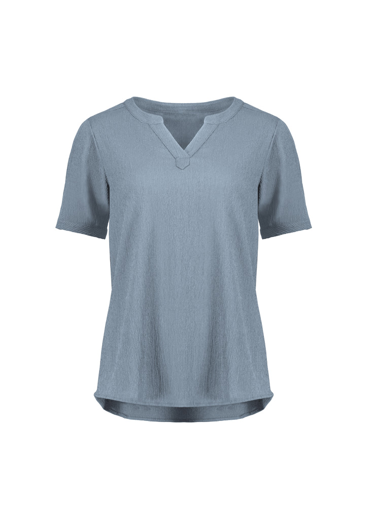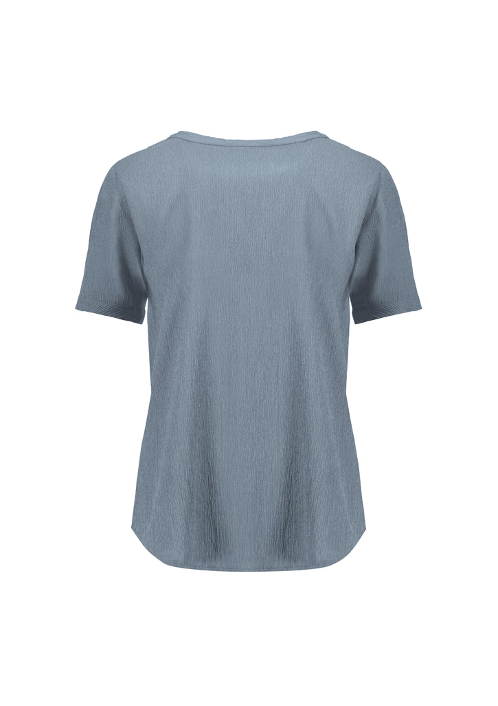 - Longer curved hemline; Round neckline with Y placket