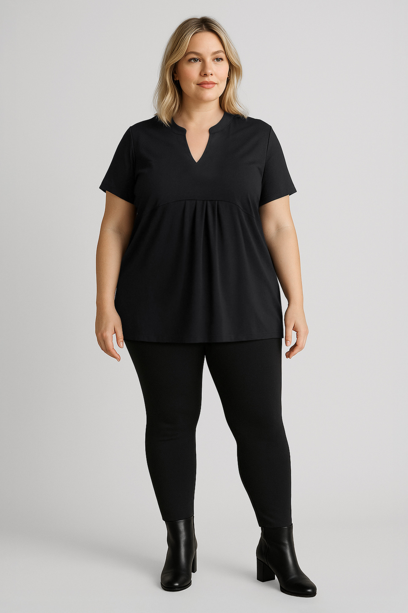 - Made from a compact double knit stretch fabric that is soft against the skin.