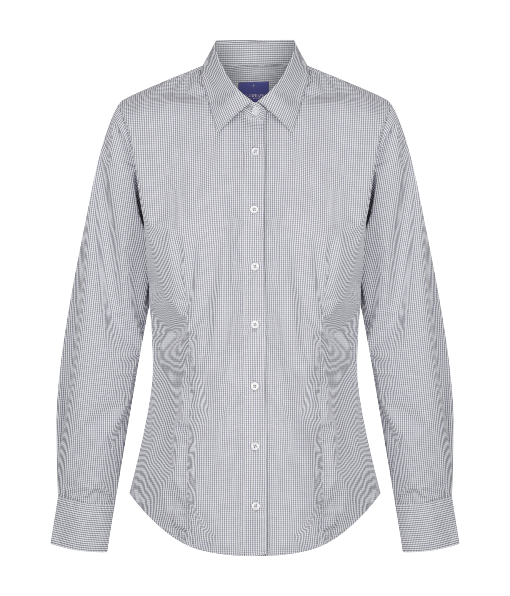 Designed for a polished yet comfortable fit, this gingham shirt features a contemporary cut with a placket front, classic collar, action back pleats for ease of movement, and a hidden modesty button for added confidence.