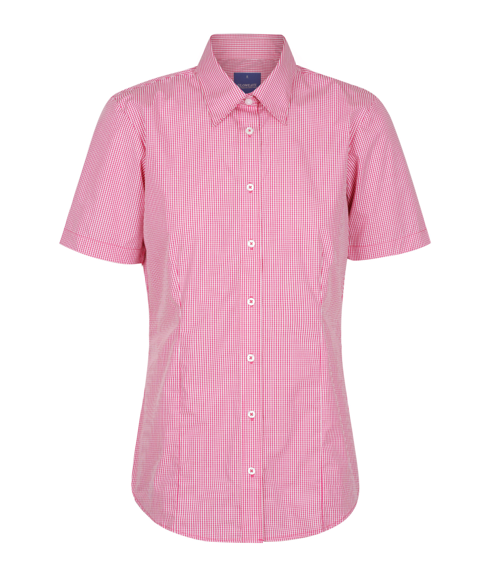 Designed for a polished yet comfortable fit, this gingham shirt features a contemporary cut with a placket front, classic collar, action back pleats for ease of movement, and a hidden modesty button for added confidence.