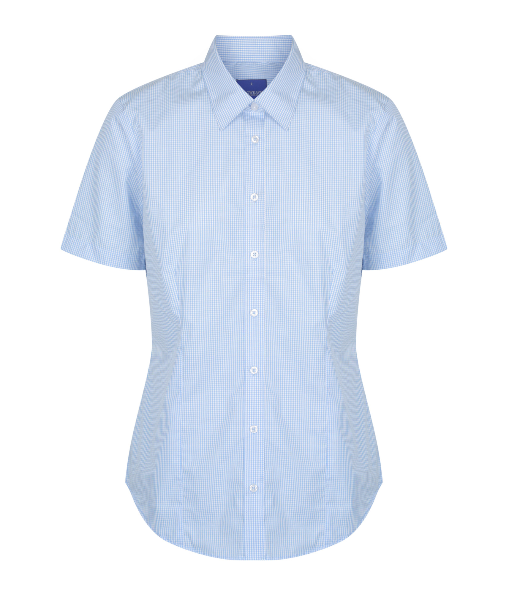 Designed for a polished yet comfortable fit, this gingham shirt features a contemporary cut with a placket front, classic collar, action back pleats for ease of movement, and a hidden modesty button for added confidence.