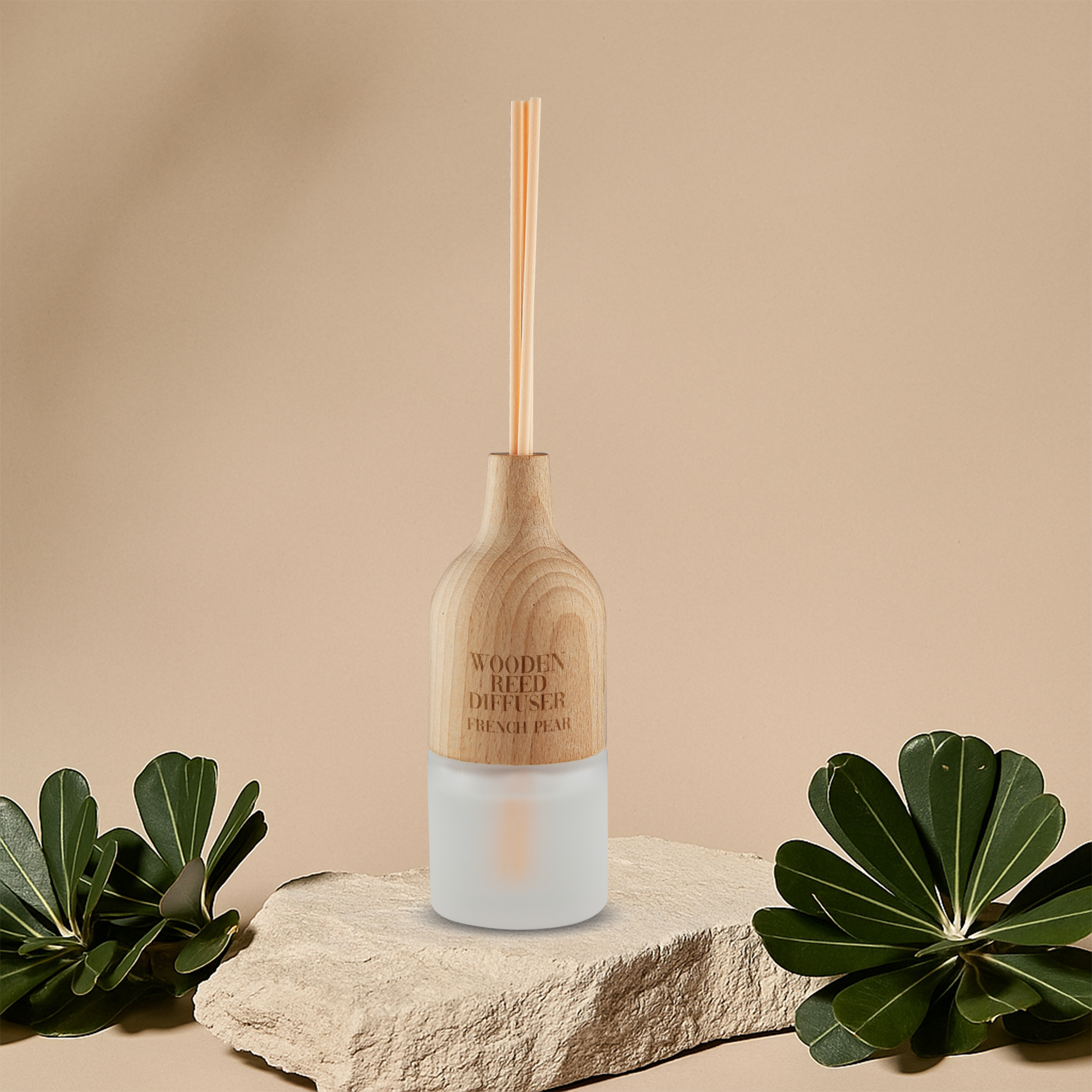 Elevate your space with the gentle sophistication of our 30ml Wooden Reed Diffuser. Designed with a natural wood top and a smooth, misty white base, this diffuser brings a soft, minimalist elegance to any room. Each set includes three premium reed sticks that effortlessly release fragrance throughout the day. Infused with the delightful scent of French Pear, the aroma is crisp, juicy, and subtly sweet, perfect for creating a calm, inviting atmosphere in your home or workspace.