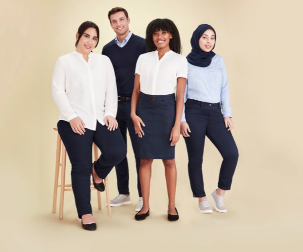 But why does this approach work so well? One reason is flexibility. Employees can rotate outfits throughout the week without the team looking mismatched or uncoordinated. For example, an employee might wear navy trousers with a cream blouse on Monday, then pair the same trousers with a soft knit or shirt the next day. The pieces change, but the overall look still feels polished and professional. Everyone still represents the brand, but they also have a little more freedom in how they dress each day. The idea comes from personal fashion, where capsule wardrobes have been popular for years because they focus on simplicity, versatility, and timeless pieces. When the same concept is applied to workplace uniforms, it helps create a balance between professionalism, comfort, and practicality something many modern workplaces are now starting to value.