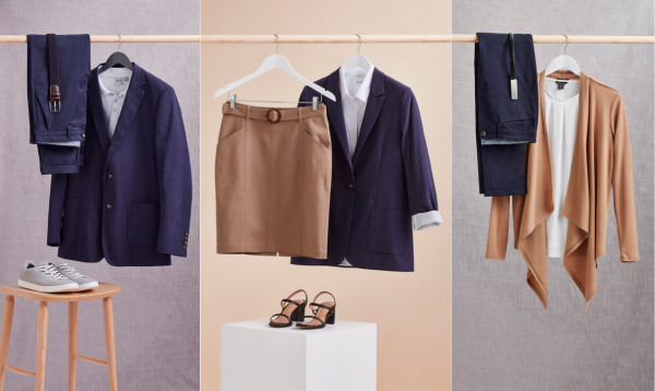 What does this look like in everyday work life? An employee might wear navy trousers with a soft white blouse on Monday, then pair the same trousers with a different top or knit the next day. The outfit changes, but the overall look still feels polished and consistent with the brand.